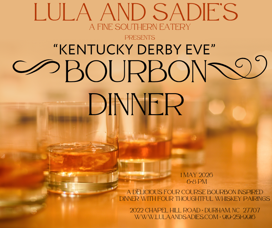 🥃 Lula and Sadie’s is hosting a delicious four course Bourbon inspired dinner with four thoughtful whiskey pairings!!! Join us from 6-8PM for our very first “KENTUCKY DERBY EVE” Bourbon Pairing Dinner.